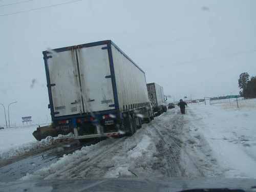 «Salí de Rosario el martes a las 20:00 por Central Argentino, con destino a mi ciudad Bahía Blanca. El inicio del viaje con lluvia, me preocupó un poco, pero todo transcurrió normalmente hasta eso de las 6 de la mañana cuando el colectivo se detuvo en el acceso a Saveedra. Nevaba copiosamente y el viento blanco no permitia avanzar al colectivo, una hora estuvimos ahí, ya con un poco de frio, porque el chofer nos indicó que el sistema de calefacción se estaba congelando…» Continuamos luego lentamente por una o dos horas hasta que llegamos al cruce de La ruta que va a Villa Ventana, donde nuevamente nos detuvimos por un largo rato. Nevaba cada vez con mayor intensidad. Había aparentemente un corte de ruta por un camión volcado y no sé que más. Apareció un camión de bomberos y nos ofreció llevarnos a Tornquist. Si quiere leer la historia completa haga click aquí