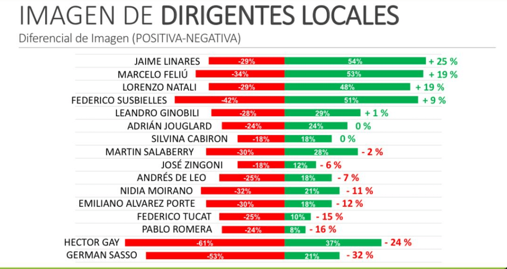 Como ambos confirmaron la completa veracidad de esos datos, sirve publicarla para que, dada la sencillez de interpretación de los números que muestran, puedan ser los lectores quienes saquen sus propias conclusiones: allí se ve con claridad que Lorenzo saca mucha ventaja por sobre unos cuantos políticos de muchos años a la hora de ser ponderado en forma positiva por sus conciudadanos.