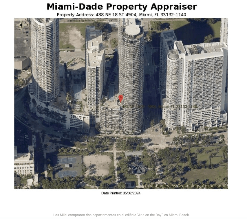 Mientras tanto, Karina, Alicia y “Beto” Milei adquirieron mediante Alkary Investments dos departamentos en el condominio “Aria on the Bay”, de Miami Beach, por US$727.900 y US$643.900 respectivamente, operaciones que fueron registradas por el sitio web oficial del condado de Miami.