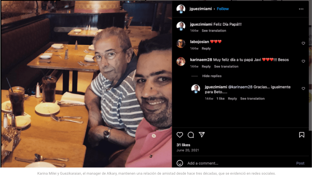 En Estados Unidos, en tanto, los Milei dejaron oficialmente Alkary en 2022, pero Guezikaraian continuó como manager de la compañía hasta su disolución, en mayo de 2023, cuando Javier Milei ya recorría el país como parte de su campaña presidencial.