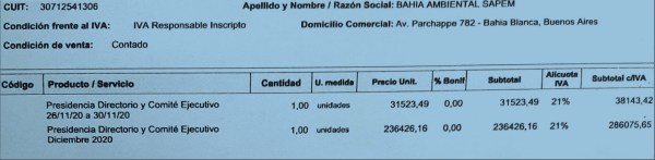El segundo salario más elevado de todos cuantos se están pagando con dineros municipales en nuestra ciudad, corresponde al gerente y presidente de la empresa Bahía Ambiental Sapem designado por Héctor Gay, contador Juan Lucas Vélez, asumido formalmente el 26 de noviembre de 2020. La última factura presentada asciende a la cifra de 342.219,07 pesos.... Leer más →